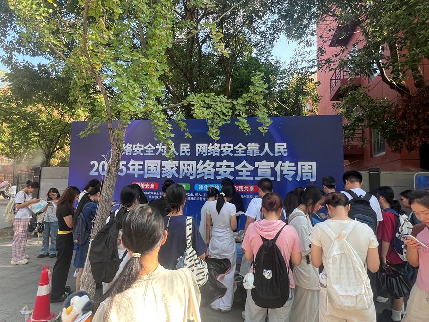 除答题活动外,活动现场还展示了网络数据安全和信息保护等各类知识展板,发放了网络安全法律法规知识手册;同时,在校内各大LED屏播放网络安全视频,多途径增进师生对网络安全法律法规和知识技能的了解。活动正值新生军训期间,吸引了大量新生的参与,现场气氛热烈。